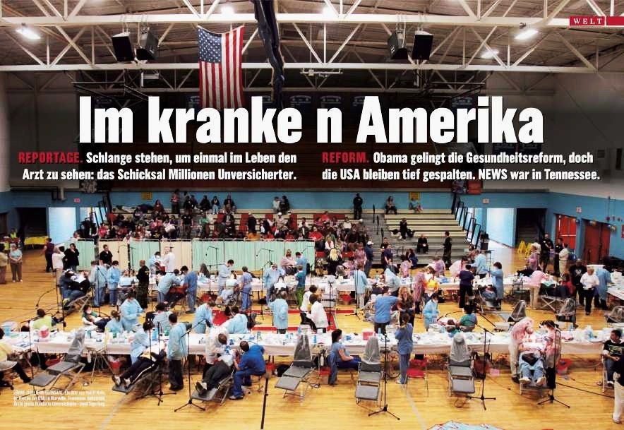 Vergangenen Freitag im US-Bundesstaat Tennessee: Während die Halls über den Highway gleiten, vorbei an einer endlos wirkenden Kette aus den immer gleichen Fast-Food-Drive-Ins mit ihrer Verheißung von noch fetteren „Super-Size“-Burgern, spricht Präsident Barack Obama im Fernsehen: „Wenn ihr denkt, dass es okay ist, dass im reichsten Land der Welt Millionen Menschen ohne Krankenversicherung sind, dann stimmt gegen dieses Gesetz.“ Obama spricht zu den Abgeordneten. Es ist der letzte Versuch, sie von seinem Großprojekt, der Gesundheitsreform, zu überzeugen. Doch Obama spricht auch zu den Halls und 47 Millionen anderen Amerikanern ohne Versicherung, wenn er sagt, „dass wir nicht länger ein System akzeptieren können, das für die privaten Versicherungsgesellschaften besser funktioniert als für die Menschen.“ Es ist bizarr: Kein Land der Welt pumpt pro Kopf so viel Geld in sein Gesundheitswesen wie die USA – und dennoch ist das System nirgendwo anders derart marode und ungerecht.