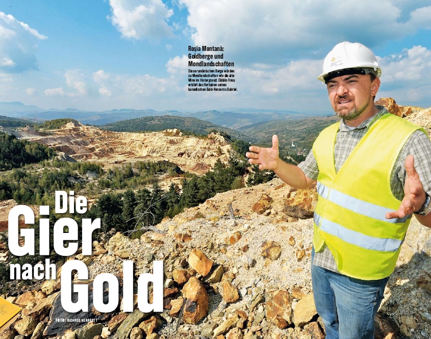 Gold, das in rauen Mengen unter den sich langsam herbstlich färbenden Hügeln liegt. Würden sie abgetragen, Tonne für Tonne, das Gestein mit dem hochgiftigen Zyanid zersetzt, entstünde eine Mondlandschaft – und Europas größte Goldmine. Bis zu 250 Tonnen des Edelmetalls lagern unter Rosia Montana, ein Milliardengeschäft für den Konzern – und der Hauch einer Perspektive für den zweitärmsten Staat der EU, der erst 2009 mit 27 Milliarden Dollar von Weltbank und IWF vor dem Bankrott bewahrt wurde.