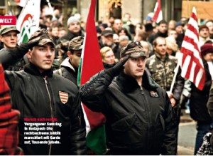 Die Profiteure seines Versagens marschieren gerade in Buda auf. Paramilitärs in Phantasieuniformen. Martialisch, gefährlich, rassistisch. Deren Anführer sehen Ungarn in „Geiselhaft der Finanzjuden“ und verbrennen die EU-Flagge. Es ist Jobbik, die „Partei der Besseren“, der extremen Rechten. 20 Prozent und mehr geben ihnen die Umfragen in einem Land, das zum Versuchslabor Europas für den Verfall geworden ist.