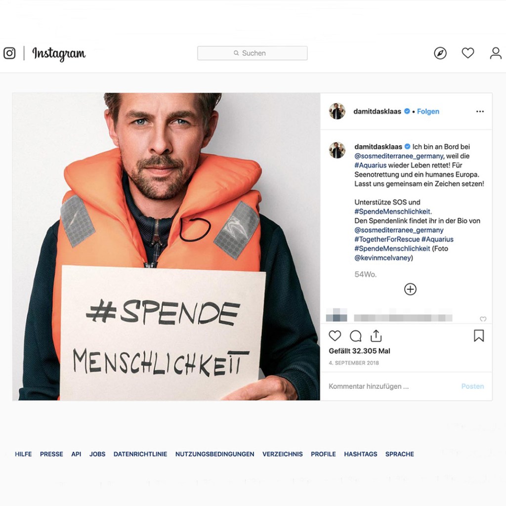 2018 rief der deutsche TV-Star Klaas Heufer-Umlauf zu Spenden für die Seenotrettung auf. Mit dem gesammelten Geld sollte ein NGO-Schiff im Mittelmeer finanziert werden. Doch ein solches lief niemals aus.